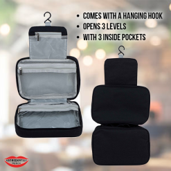 The Ultimate Toiletry Travel Care Kit Bag is designed for convenience and organization while on the go. Made from durable 300D cationic fabric, this versatile bag features a hanging hook for easy access, a secure zipper closure, and three inside pockets for optimal storage. With an innovative three-level opening system, it provides ample space when unfolded and compact storage when folded. Available in a range of stylish colors, including black, orange, light grey, dark grey, green, teal, blue, pink, and maroon, it can be personalised with your logo through heat transfer printing. This makes it a perfect travel companion, blending function and style.