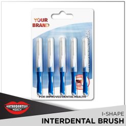 Custom printed with your logo design. Interdental brushes with the choice of two different shapes. “I” shape. Professionally retail packaged and a personalised printed backing card for your branding. Ready for retail or give to your patients while looking professional promoting your brand. Great for cleaning in between braces or your teeth where tooth brushes cannot reach.