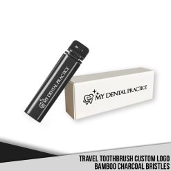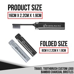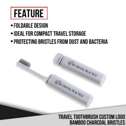 The Travel Toothbrush Custom Logo Bamboo Charcoal Bristles is a premium, eco-friendly toothbrush that can be branded with your logo, designed for dental and orthodontic practices in worldwide to provide to patients as part of oral care kits or during treatment visits. Its foldable design ensures portability and hygiene, making it an excellent addition to professional oral care solutions.