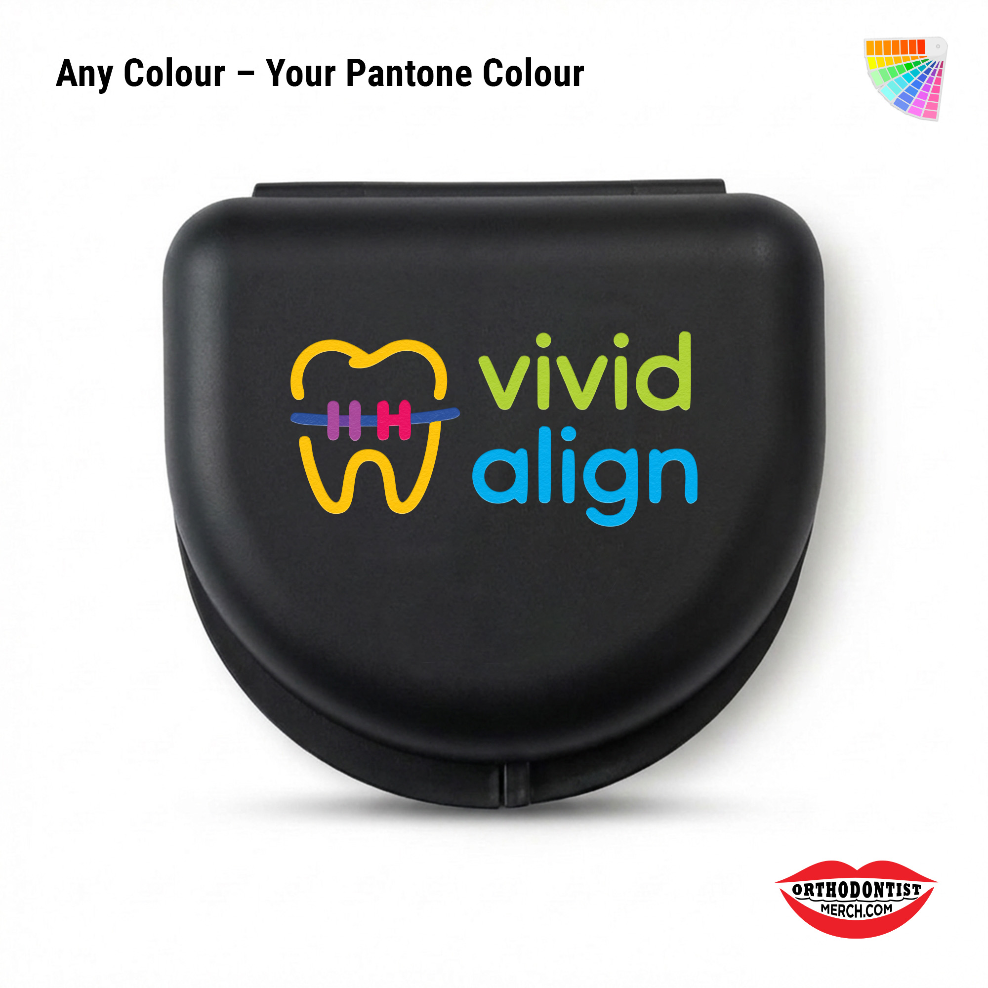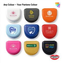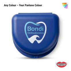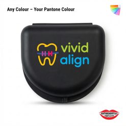 This beautiful Matt surface finish retainer case can be custom printed with your logo design. Your brand printed on these matt finish BPA Free retainer cases. These retainer cases can be manufactured in your pantone colour of choice to match your corporate image. A sticker label on the bottom designed for your patient to fill in their contact name and phone number should they be misplaced. These retainer cases are perfect for your patients to keep retainers clean for when ready to put on over their teeth next. They are also great for marketing your brand awareness to the market.